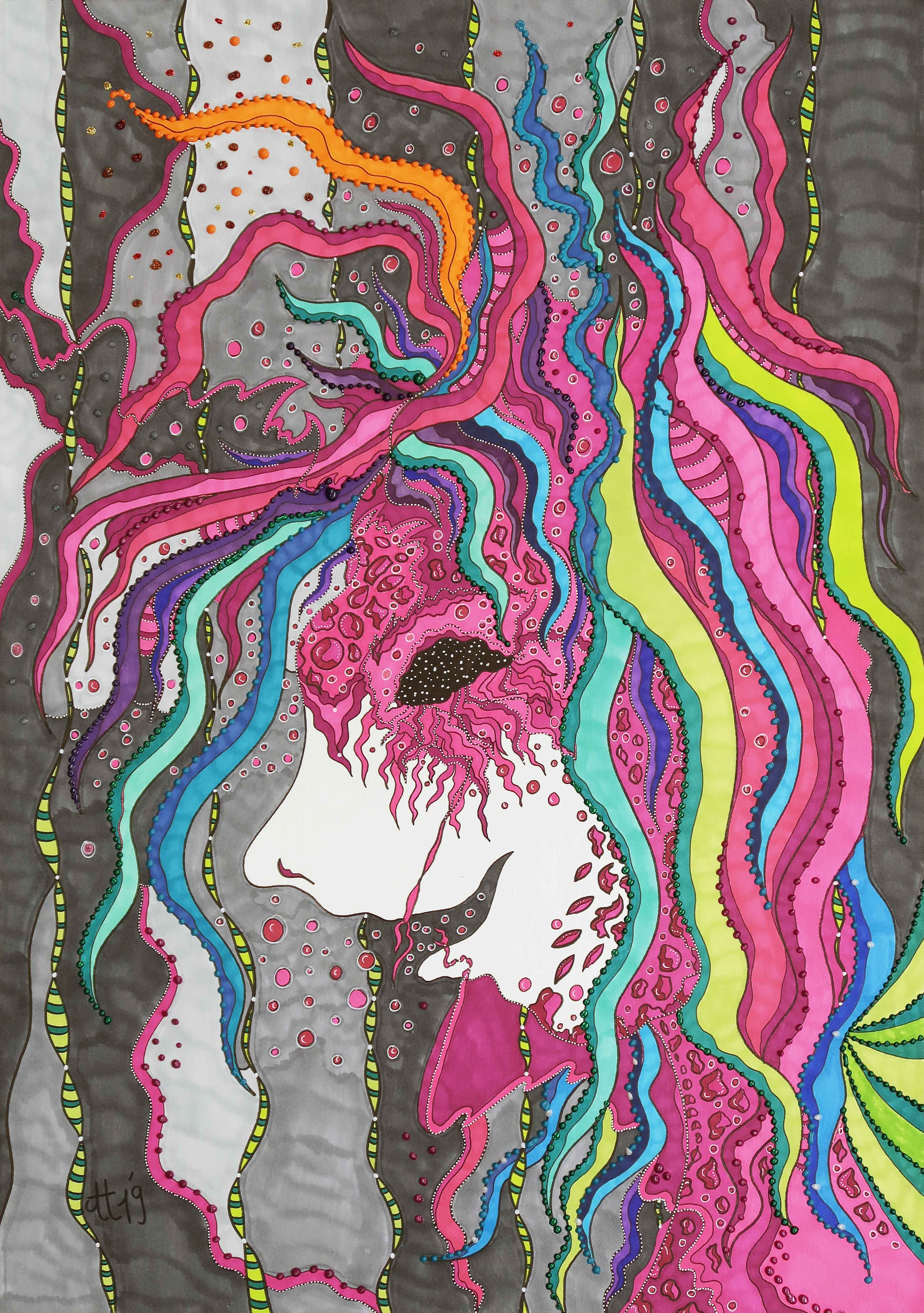 „Geliebte Kreativität 1“, 59.4×42, diverse Profi-Künstlerstifte auf hochwertigem Papier, Preis auf Anfrage.