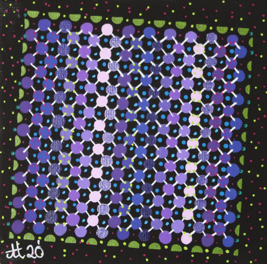 „Etwas Gekritzel“, 20×20, Acrylfarbe, Acrylstifte, Acrylspray, Glitzerfarbe und Streuglitzer auf schwarzer Malpappe, Preis auf Anfrage.