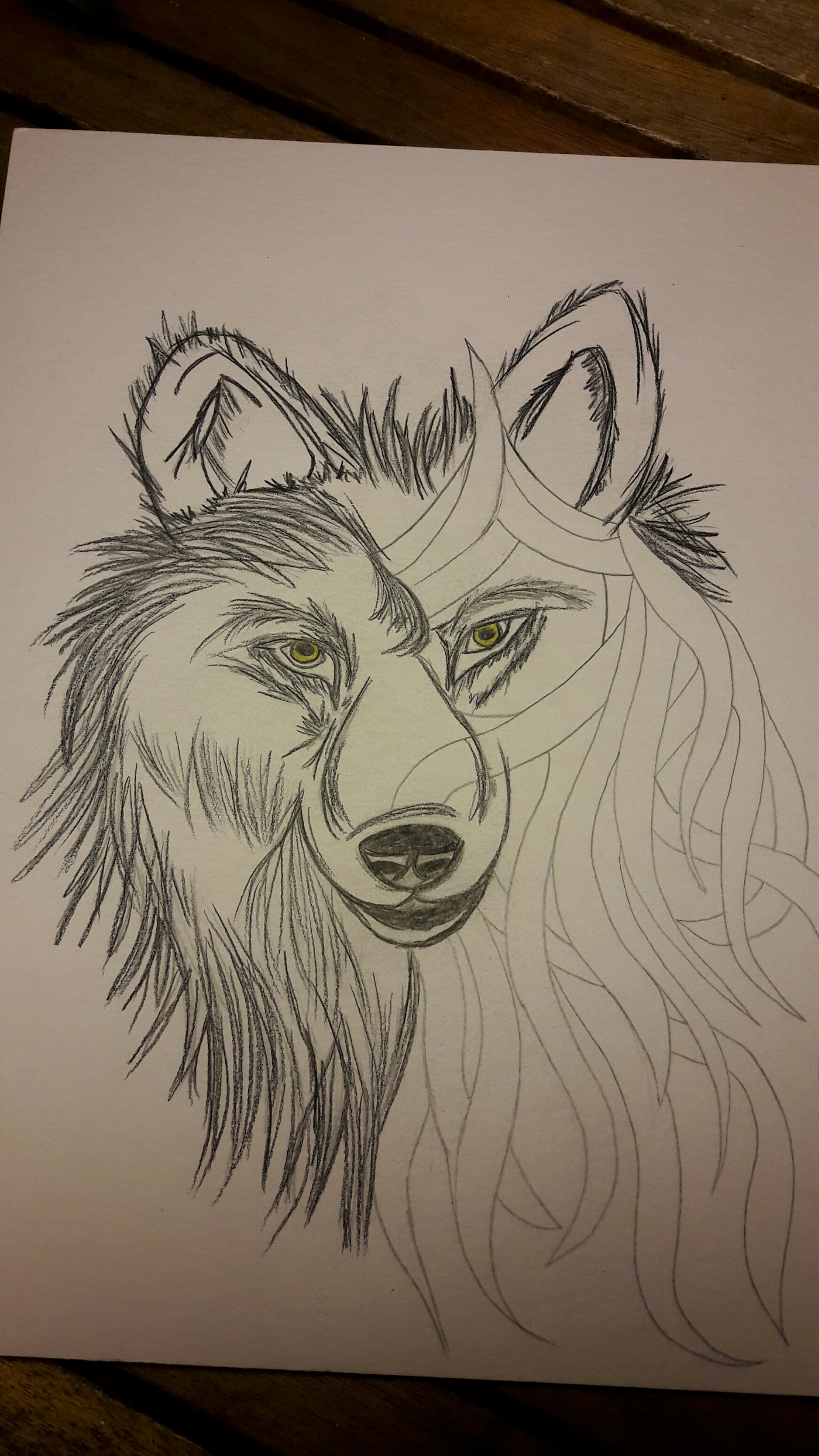 ← Eigentlich….es sollte eigentlich ein Wolf werden…nun sieht es eher aus wie ein Hund. Wir warten mal ab wohin uns das Werk noch trägt…