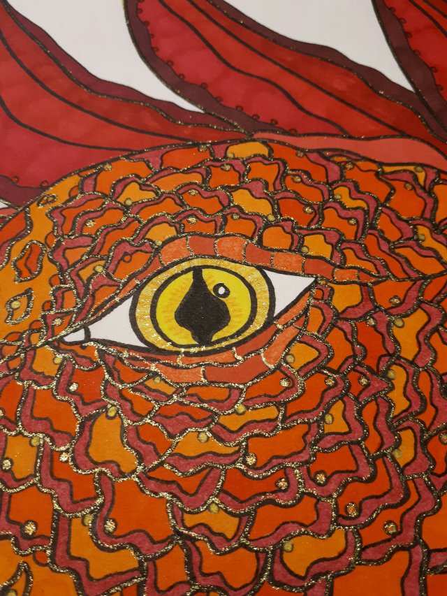 „Der muränige Gustav“, 50×60, Acrylfarbe, Acrylstifte, Acrylspray, Glitzerfarbe und Streuglitzer auf schwarzer Leinwand , Preis auf Anfrage.