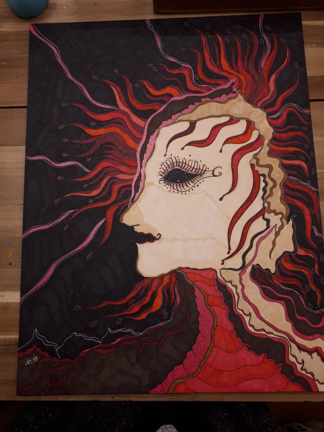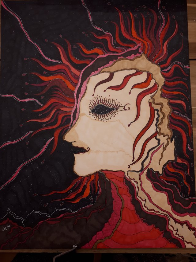 "Was am Ende bleibt", 80x100, Acrylfarbe, Acrylstifte, Acrylspray, Glitzerfarbe und Streuglitzer auf schwarzer Leinwand , Preis auf Anfrage.