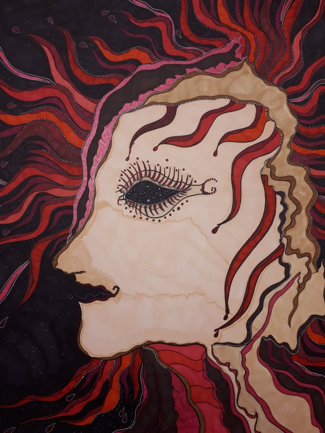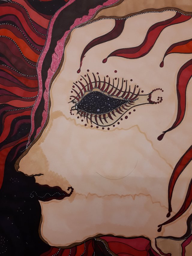 "Ich träume ANDERS", 80x100, Acrylfarbe, Acrylstifte, Acrylspray, Glitzerfarbe und Streuglitzer auf schwarzer Leinwand , verkauft.