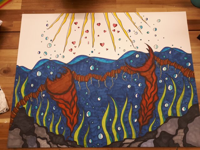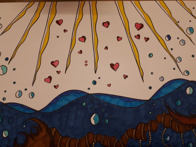 "ESVBM Liebe", 40x30, Acrylfarbe, Acrylstifte, Acrylspray, Glitzerfarbe und Streuglitzer auf schwarzer Malpappe, Preis auf Anfrage.
