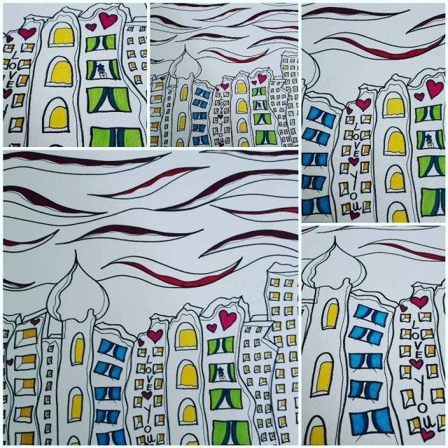 "ESVBM Liebe", 40x30, Acrylfarbe, Acrylstifte, Acrylspray, Glitzerfarbe und Streuglitzer auf schwarzer Malpappe, Preis auf Anfrage.