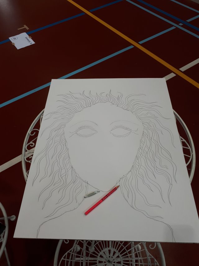 "ESVBM Prinzessin", 20x20, Acrylfarbe, Acrylstifte, Acrylspray, Glitzerfarbe und Streuglitzer auf schwarzer Malpappe, Preis auf Anfrage.