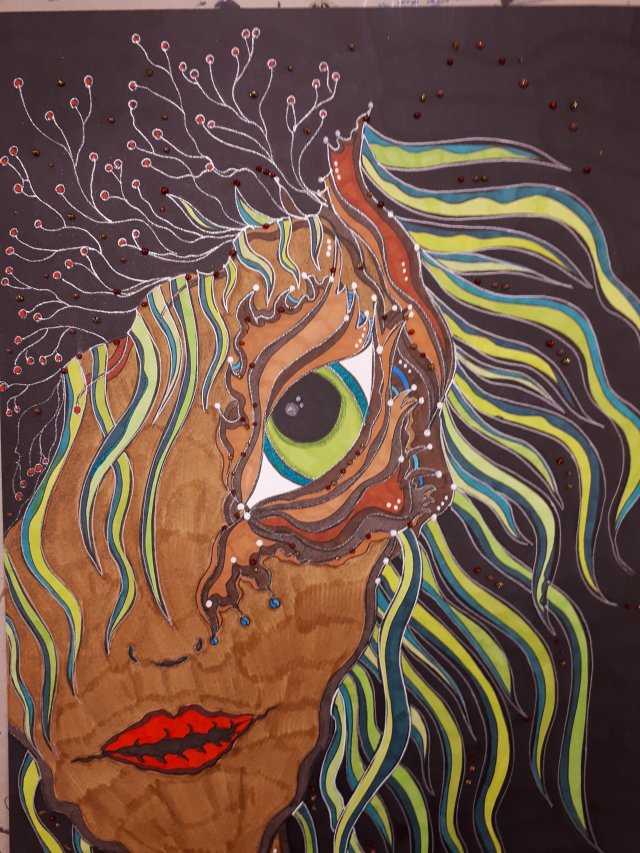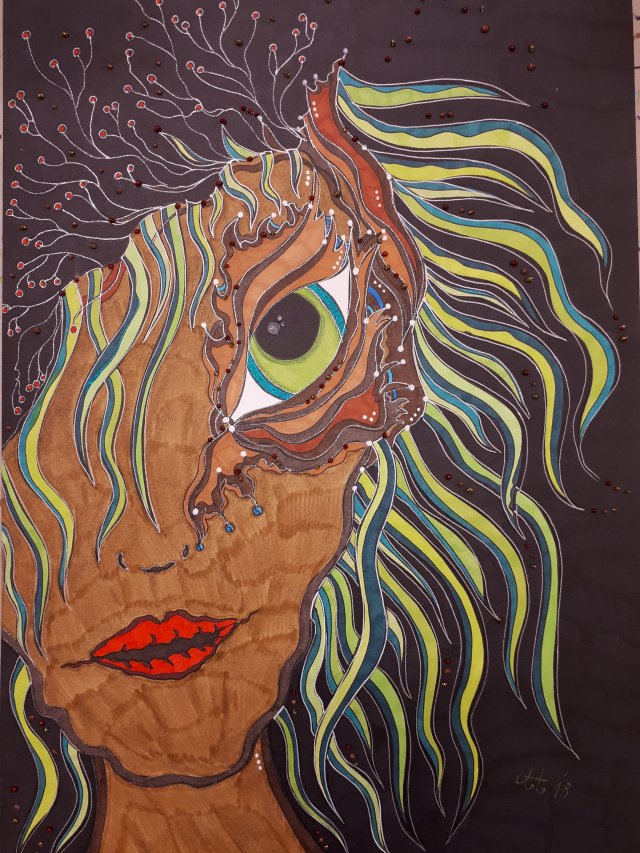 "Ich träume ANDERS", 80x100, Acrylfarbe, Acrylstifte, Acrylspray, Glitzerfarbe und Streuglitzer auf schwarzer Leinwand , verkauft.
