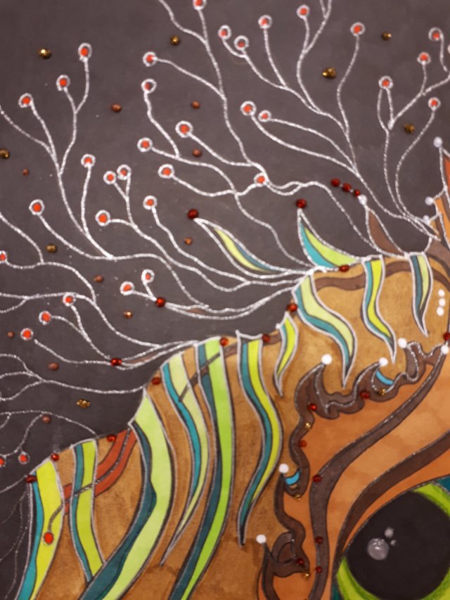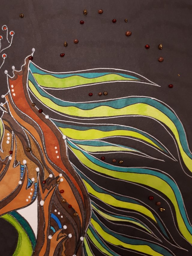 "Gehalten im Nirgendwo", 80x100, Acrylfarbe, Acrylstifte, Acrylspray, Glitzerfarbe und Streuglitzer auf schwarzer Leinwand , Preis auf Anfrage.