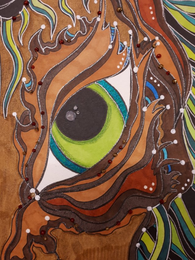 "Das ANDERS-TIER im Sternenhimmel", 60x80, Acrylfarbe, Acrylstifte, Acrylspray, Glitzerfarbe und Streuglitzer auf schwarzer Leinwand , unverkäuflich.