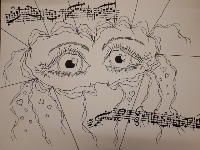 "ESVBM Liebe", 40x30, Acrylfarbe, Acrylstifte, Acrylspray, Glitzerfarbe und Streuglitzer auf schwarzer Malpappe, Preis auf Anfrage.