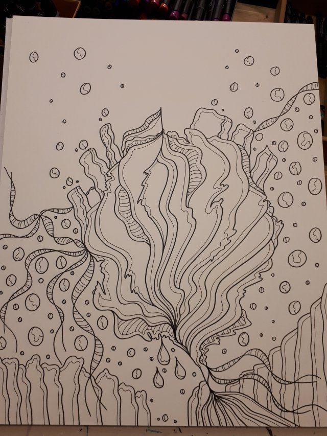 "Der muränige Gustav", 50x60, Acrylfarbe, Acrylstifte, Acrylspray, Glitzerfarbe und Streuglitzer auf schwarzer Leinwand , Preis auf Anfrage.