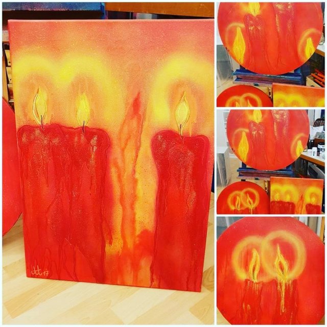Nochmal überarbeitet Acryl Spray und diverse andere Materialien auf Leinwand Titel: Licht ( 40x50cm) Titel: Ein wenig Licht (50 cm rund klein) Titel: Im Licht (80cm rund gross) Made bye Kunst mal anders