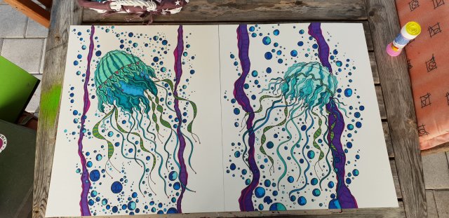 Die Sonne verlässt mich so langsam im Garten… Dies sind die aktuellsten Werke, angefangen in Tiengen am letzten Wochenende, von Kunst mal anders Natürlich noch in Arbeit… 40,6×50,8 cm 300g Aquarell Papier Diverse Künstlerstiften und Künstlertusche..