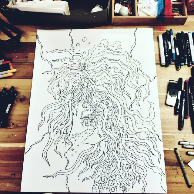 KUNST mal Anders meldet sich nach den Ostertagen zurück… Ich hoffe ihr hattet alle schöne freie Tage… Also nun ans Werk… Die dritte im Bunde und auch die letzte. Ich belasse es bei einem Trio… Titel: Gestörte Kreativität Bisher Künstlertusche auf 300g Aquarell Papier Grösse: 54 x 65 cm Idee und Umsetzung Original Made bye KUNST mal Anders