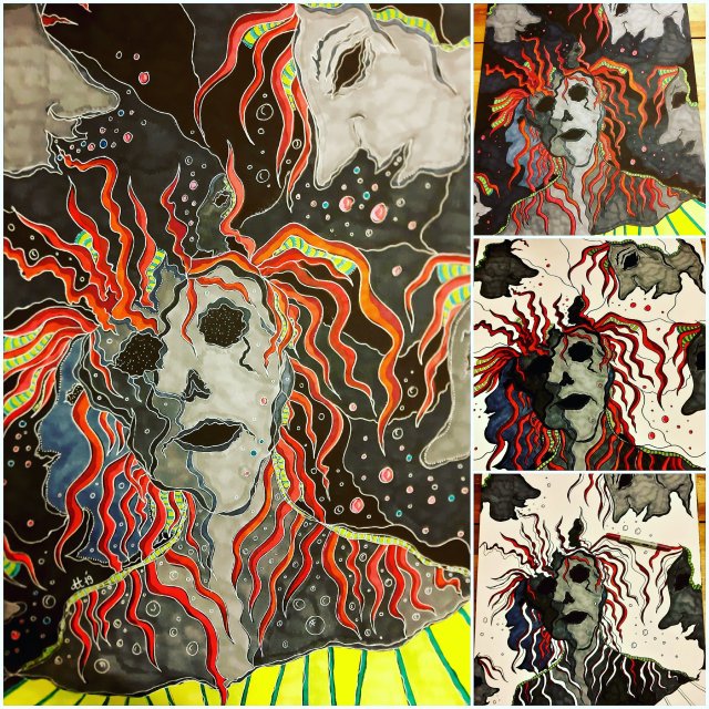 Guten Morgen ihr Lieben… KUNST mal Anders hat Gas gegeben… Mit Erfolg… Geschafft… Titel: Innere SCHULD Grösse: 54×65 cm Künstlerstifte verschiedenster Art und Weise, Acrylstifte und Gel Pens auf 300g Aquarell Papier Idee und Umsetzung Original made//bye… KUNST mal Anders