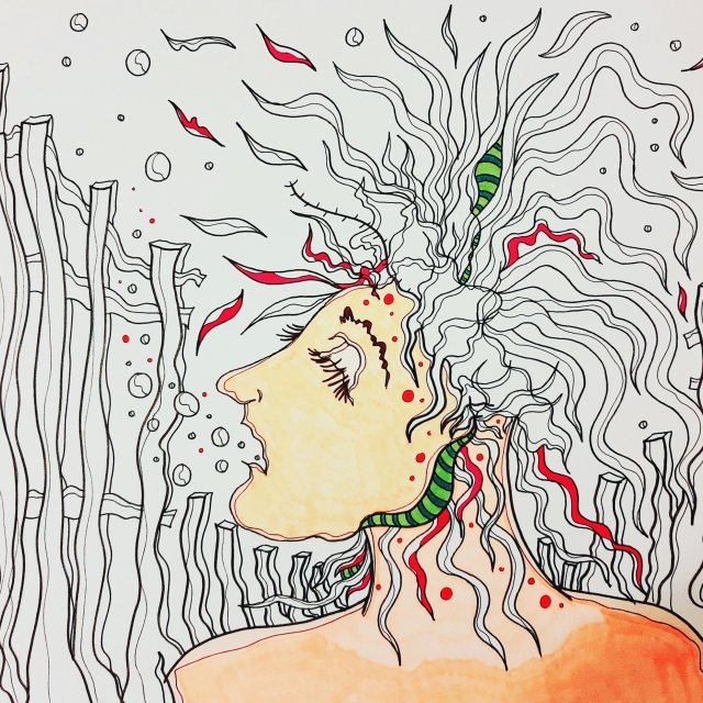"Gehalten im Nirgendwo", 80x100, Acrylfarbe, Acrylstifte, Acrylspray, Glitzerfarbe und Streuglitzer auf schwarzer Leinwand , Preis auf Anfrage.