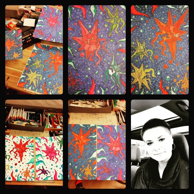 "Das ANDERS-TIER im Sternenhimmel", 60x80, Acrylfarbe, Acrylstifte, Acrylspray, Glitzerfarbe und Streuglitzer auf schwarzer Leinwand , unverkäuflich.