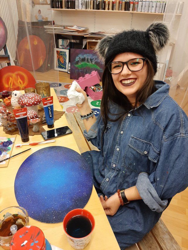 Guten Abend… Eine meine wundervollen Schülerinnen,…ist heute Abend auch im Kunst mal Anders Atelier fleißig… KUNST schafft BRÜCKEN…