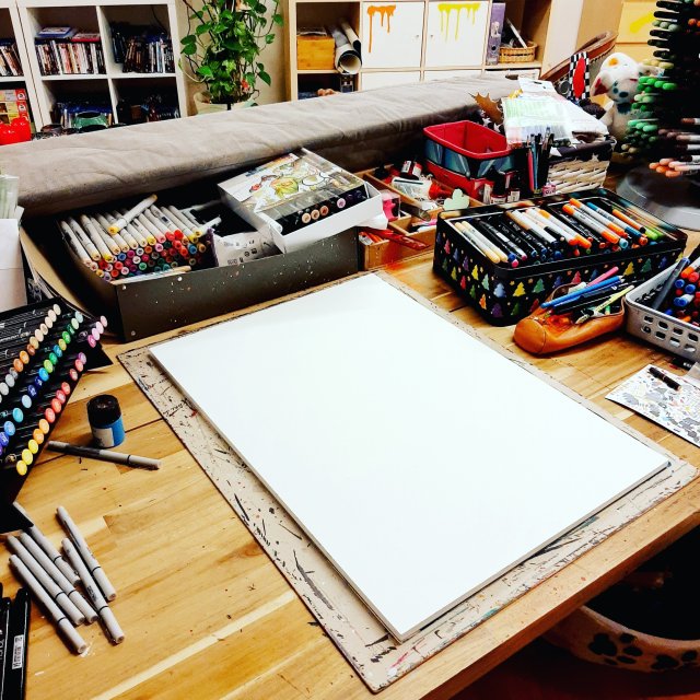 Fast schon Mittwoch… Mal sehen was noch entstehen möchte… Lieben Gruß, zur später Stunde, aus dem Kunst mal Anders Atelier