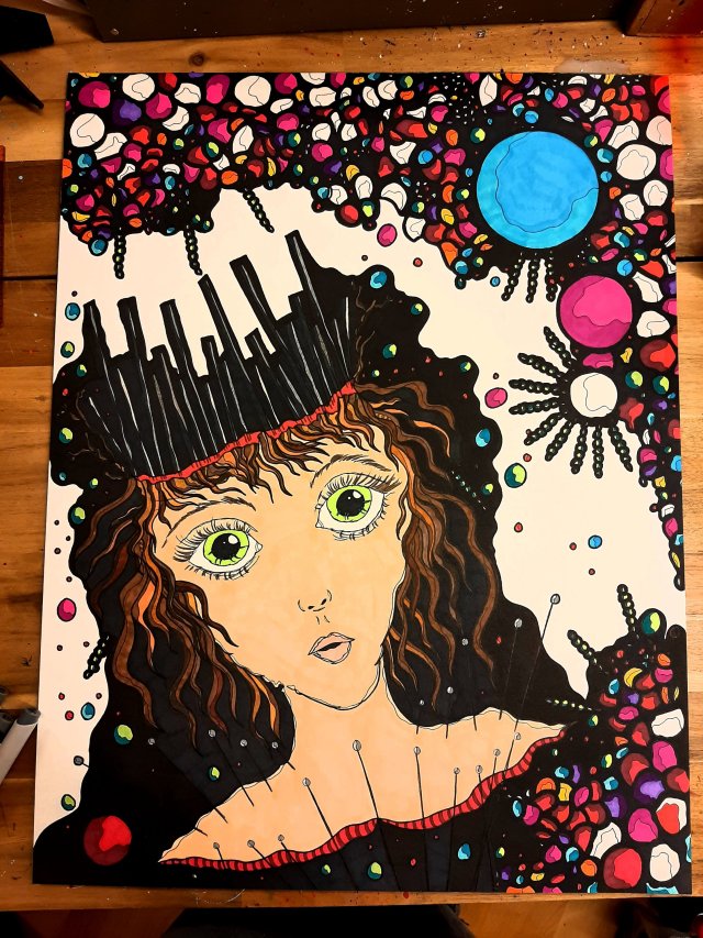 Hallo ihr Lieben… “ Das Werk,das man malt,ist eine Art,Tagebuch zu führen.“ Pablo Picasso Es wird BUNT…….es fehlt NUR NOCH GRAU im Hintergrund…und die Ausarbeitung der Details… TITEL…folgt Bisher Künstlerstifte mancher Art und Permanent Liner auf 300g Mixed Media Papier Idee und Umsetzung, wie immer,Original made/by Kunst mal Anders