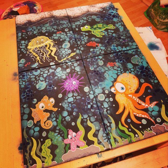Moin Moin ihr Lieben… Es war eine schöne, bunte und kreative Auszeit im Atelier.. Das was ich schaffen wollte, ist geschafft… Nun muss alles gut trocknen…Morgen folgt die Ausarbeitung der Details… Idee und Umsetzung, wie immer,Original made/by Kunst mal Anders