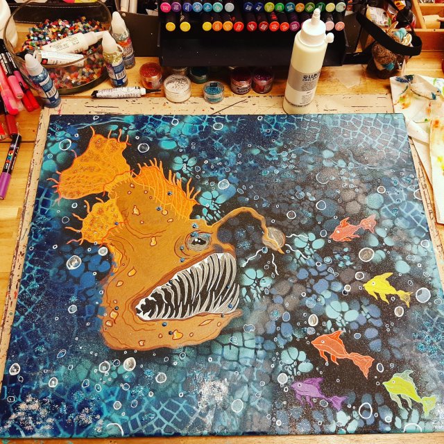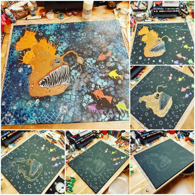 Nach einem schönen Abend im Kurs im Atelier und einer kleinen Nachtschicht…ist dieses Werk bald geschafft…