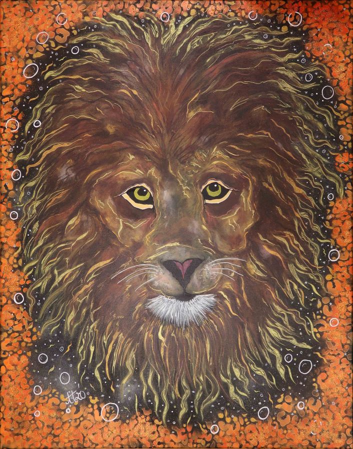 „Der Grosse MUTIGE MONTI“, 80×100, Acrylfarbe, Acrylstifte, Acrylspray, Glitzerfarbe und Streuglitzer auf schwarzer Leinwand , Preis auf Anfrage.