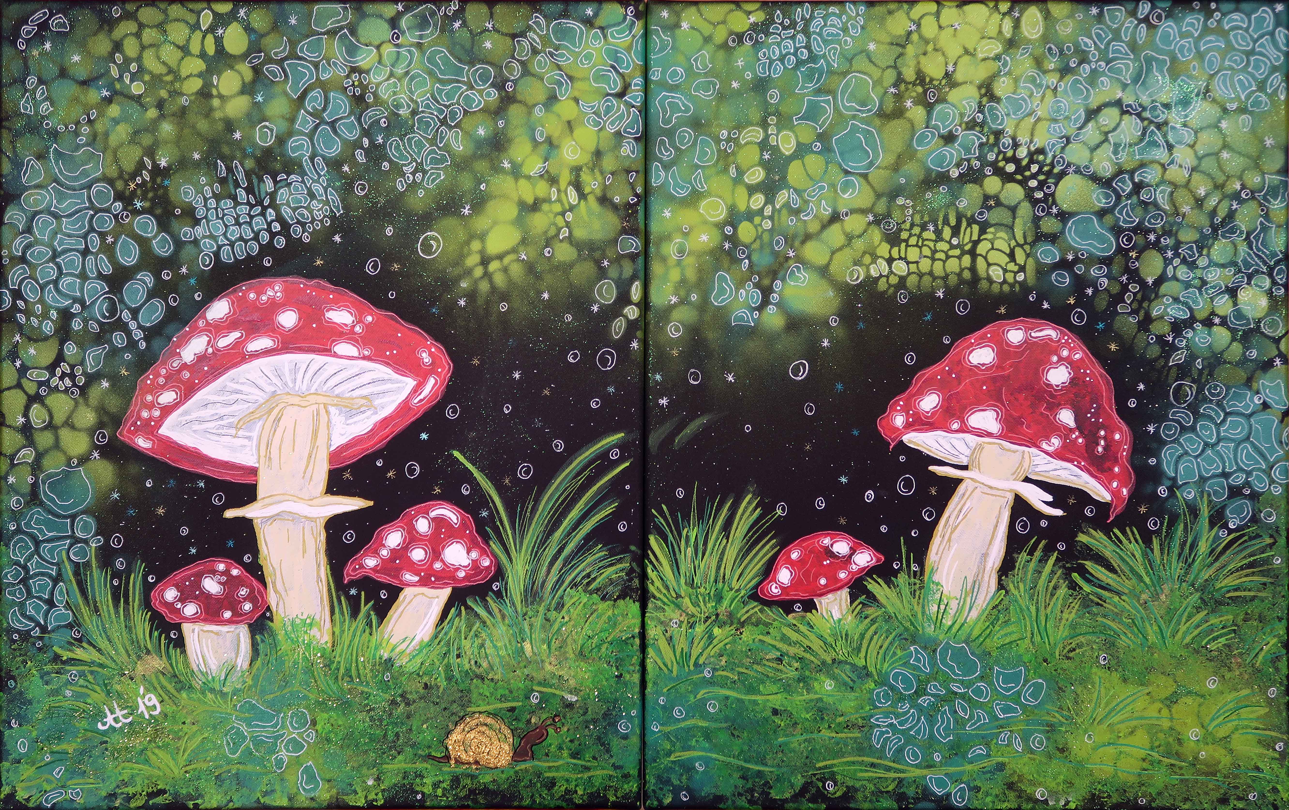 „Ein PHANTASIEVOLLER Moment“, 2X40x50, Acry. und diverse Profi-Künstlerstifte auf Leinwand, verkauft.