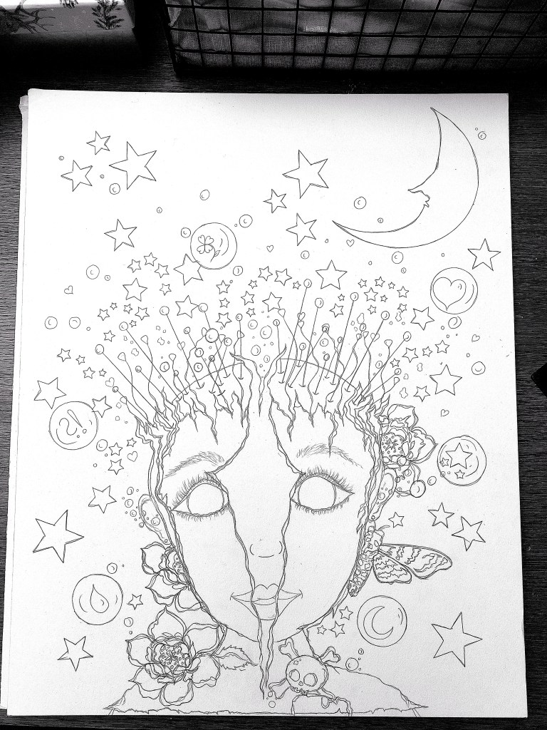 In Bleistift ist die Skizze fertig…Nun geht’s ans ausarbeiten…
