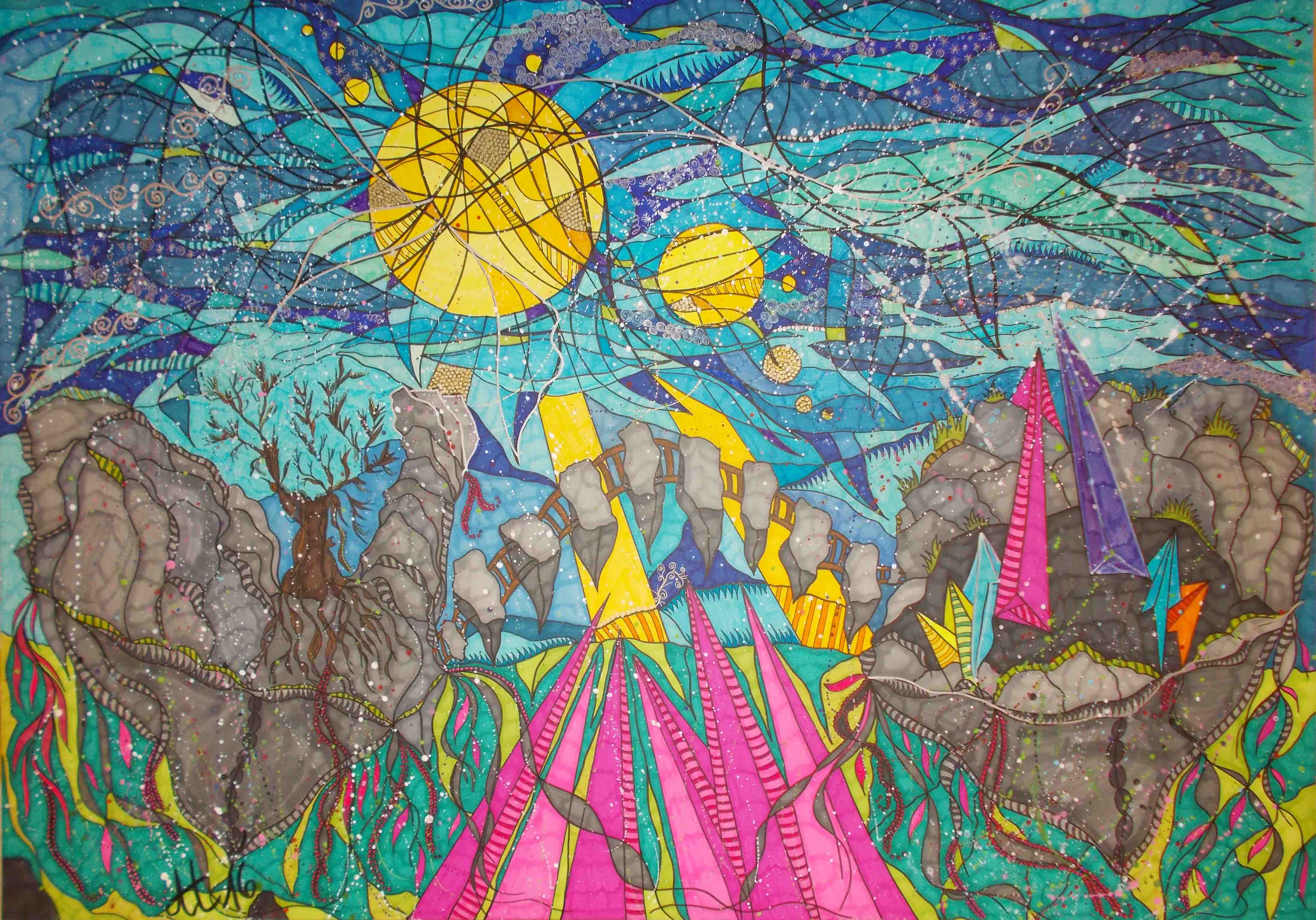 „Das Wunder“, 59×84, diverse Marker auf Aquarellpapier, Preis auf Anfrage