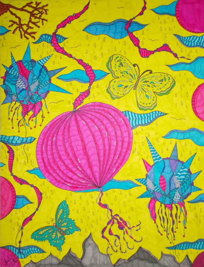 „Der Frühling naht“, 60×50, diverse Marker auf Aquarellpapier, Preis auf Anfrage