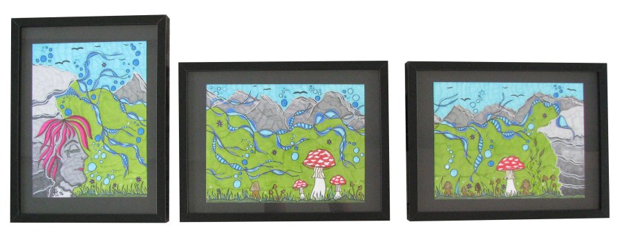 „Without God“, 3 Bilder 22×30, diverse Marker auf Aquarellpapier, Ausstellung Florenz