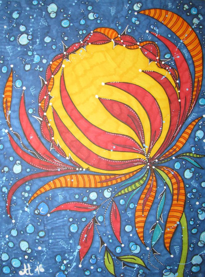 „Aquaflower the red“, 40×50, diverse Marker auf Aquarellpapier, Preis auf Anfrage