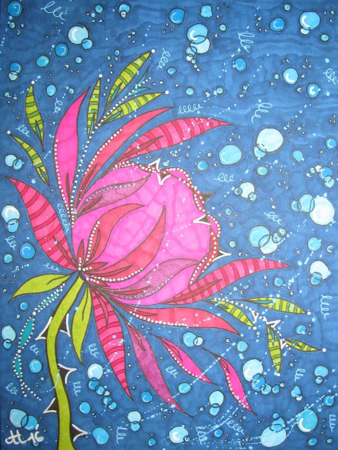 „Aquaflower the pink“, 24×32, diverse Marker auf Aquarellpapier, Preis auf Anfrage