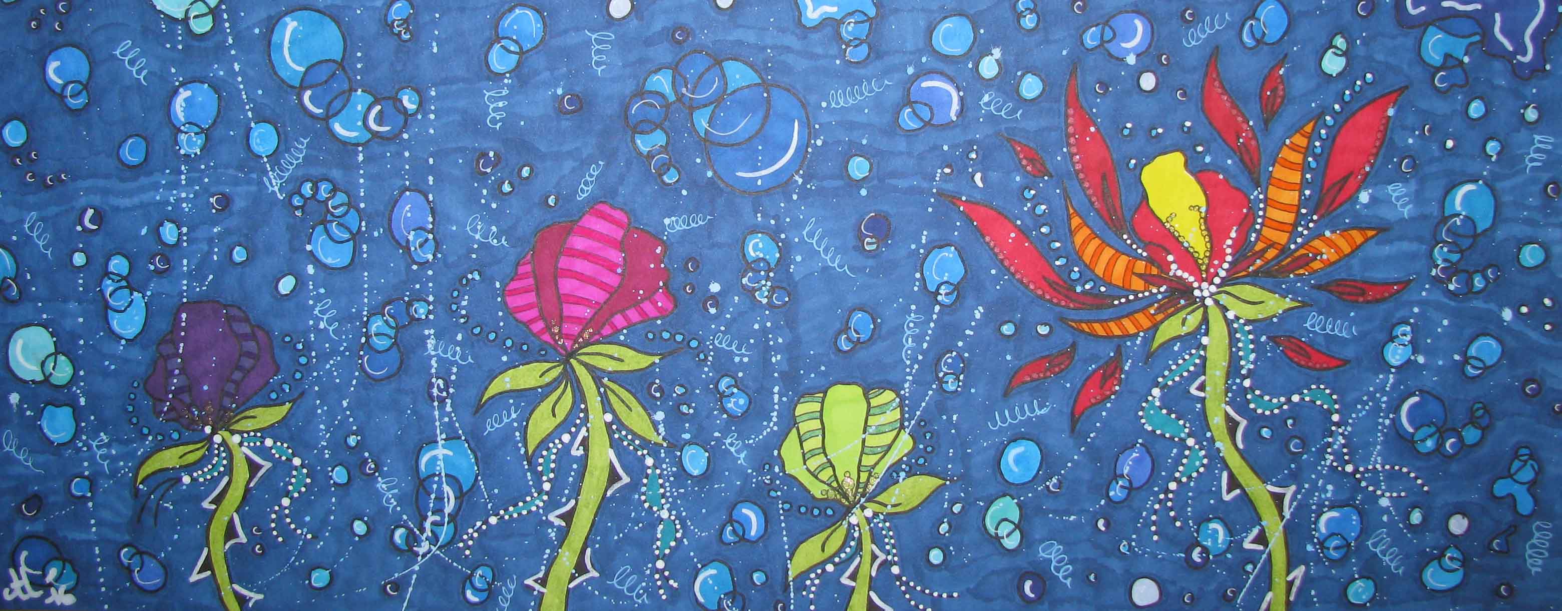 „Aquaflowers panorama“, 20×50, diverse Marker auf Aquarellpapier, Preis auf Anfrage