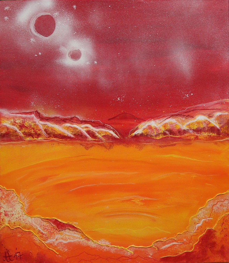 „Auf dem Weg“, 80×90, Acryl, Pastell und Marker auf Leinwand, verkauft.
