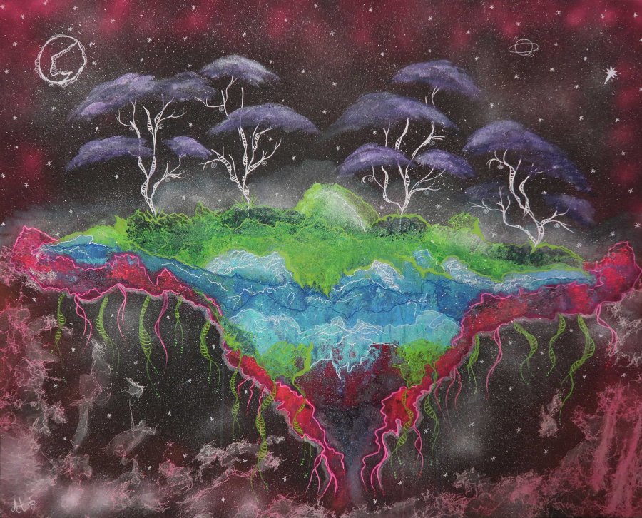 „Abgerückt…“, 80×100, Acryl, Pastell und Marker auf Leinwand, verkauft.