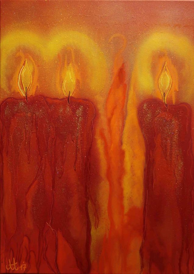 „Im Kerzenschein“, 50×70, Acryl, Pastell und Marker auf Leinwand, Preis auf Anfrage