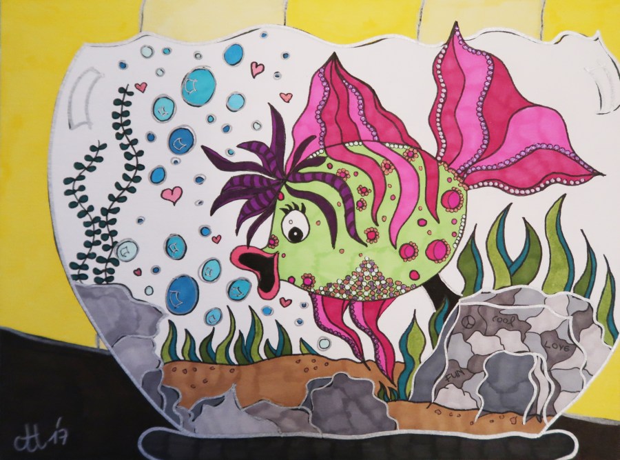 „Familie Zier-Fisch, Lulu“, 32×24, diverse Marker auf Aquarellpapier, Preis auf Anfrage