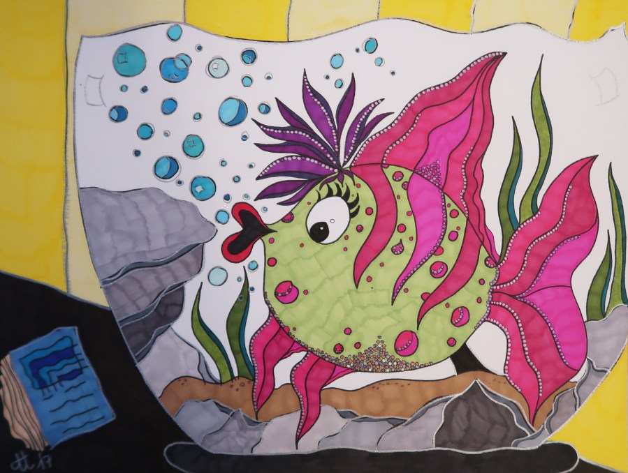 „Familie Zier-Fisch, Olga“, 48×36, diverse Marker auf Aquarellpapier, Preis auf Anfrage