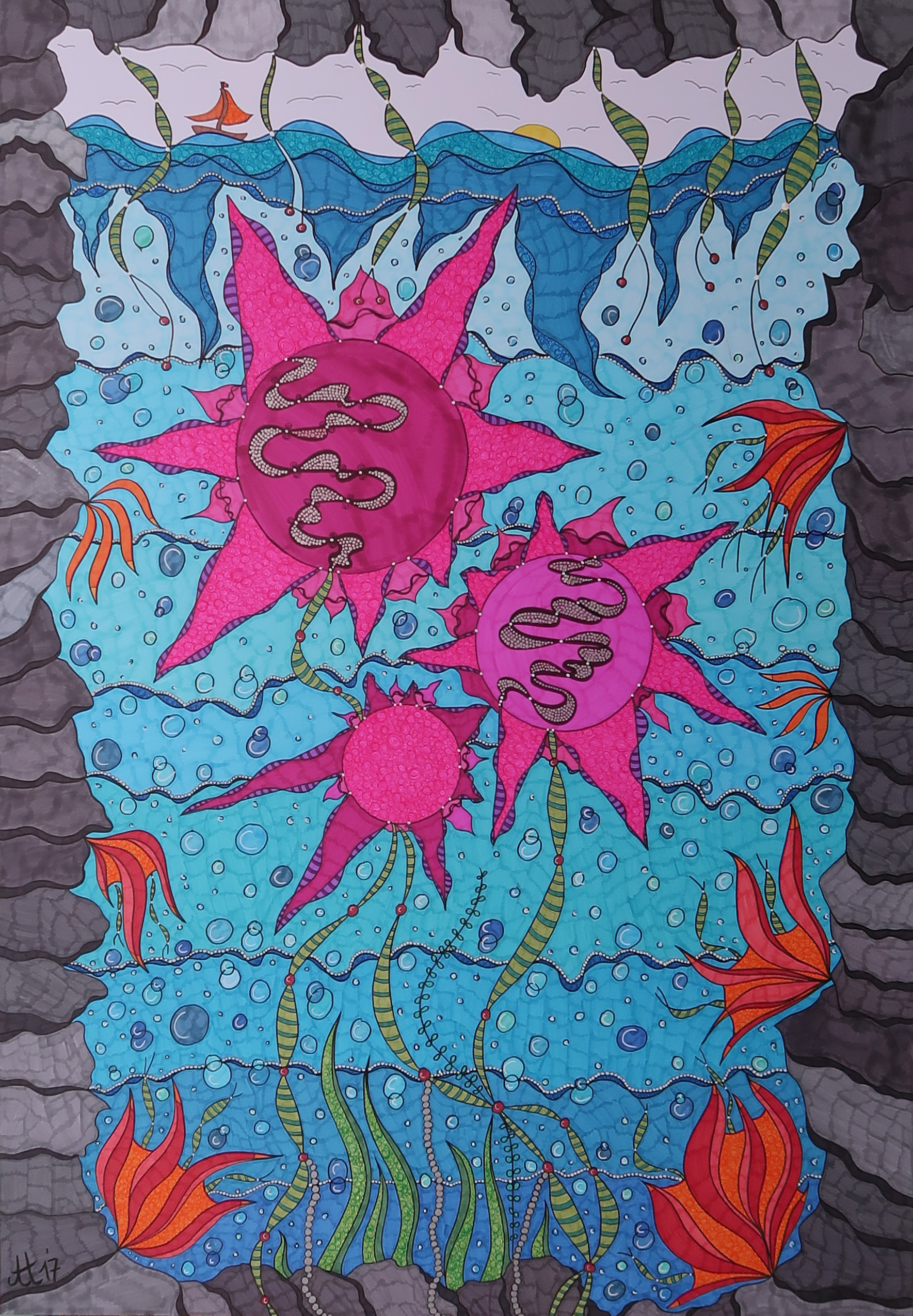 „Bunter Abschied“, 70×100, diverse Marker auf Papier, Preis auf Anfrage.