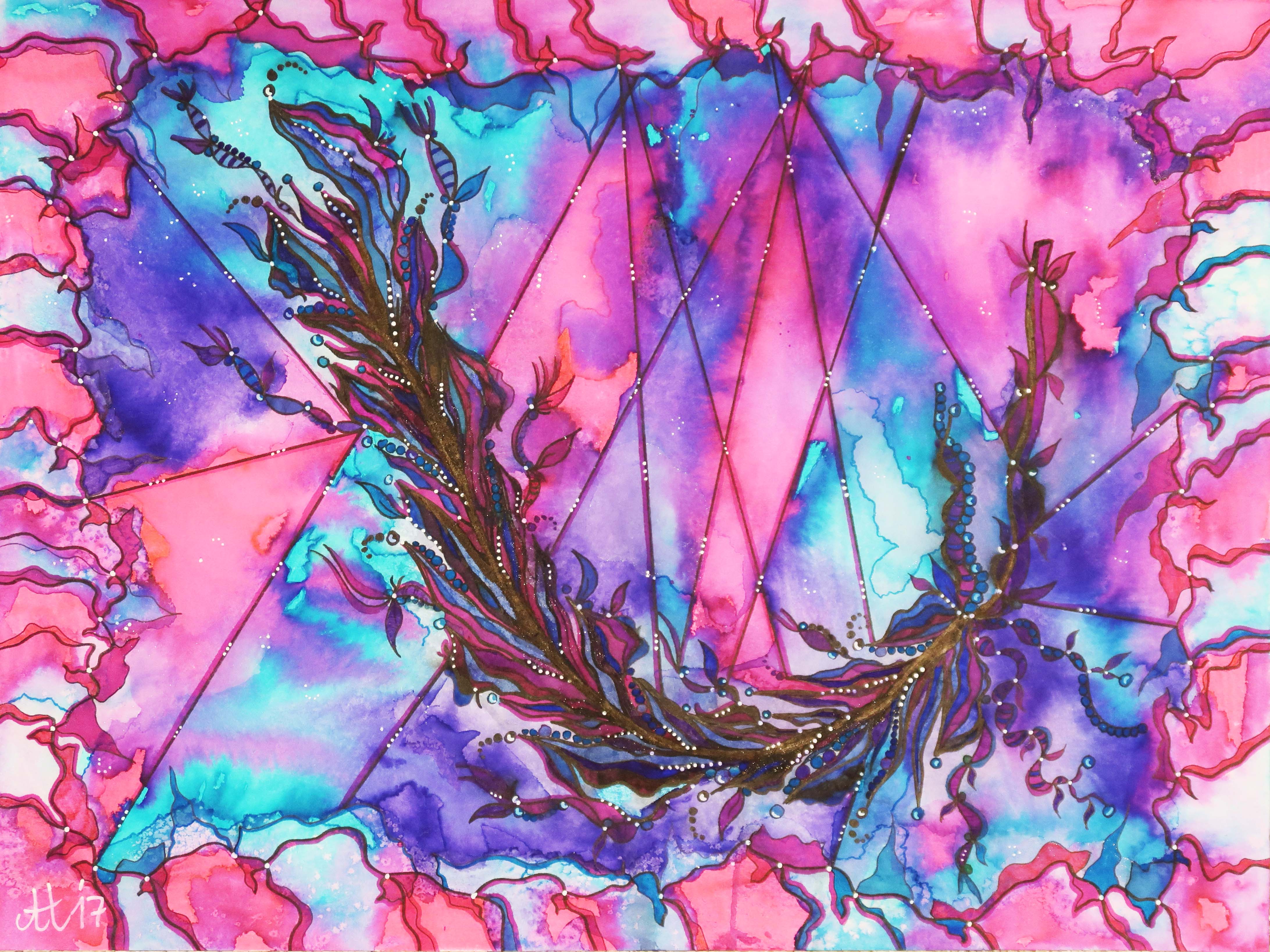 „Mit Leichtigkeit“, 36×48, diverse Marker auf Papier, Preis auf Anfrage.