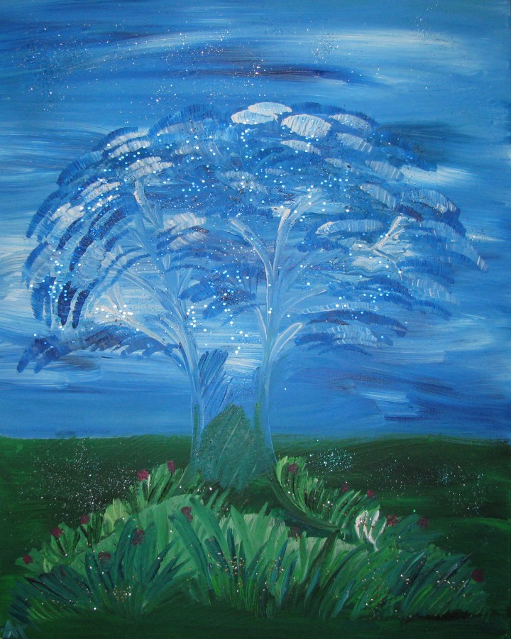 „Traum-Baum“, 40×40, diverse Medien auf Leinwand, Preis auf Anfrage