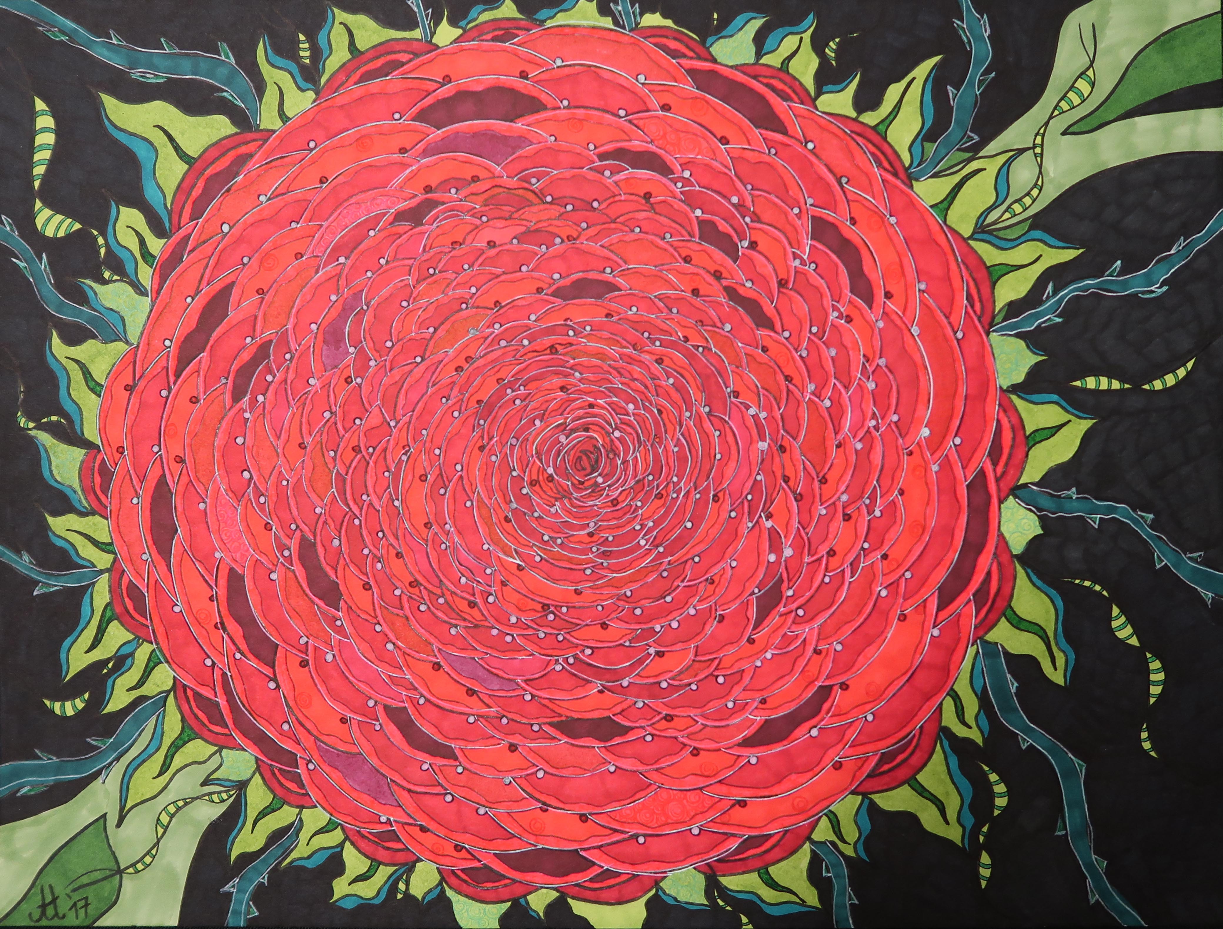 „Rote Schönheit“, 36×48, diverse Marker auf Papier, Preis auf Anfrage.