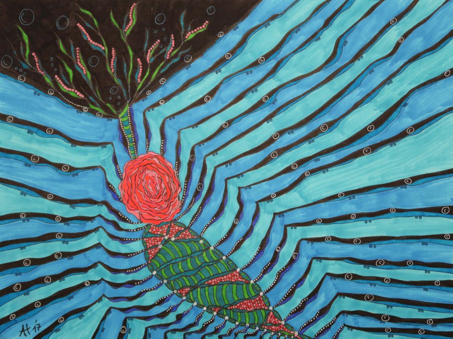 „Abgeschlossen“, 30×40, diverse Marker auf Papier, Preis auf Anfrage.