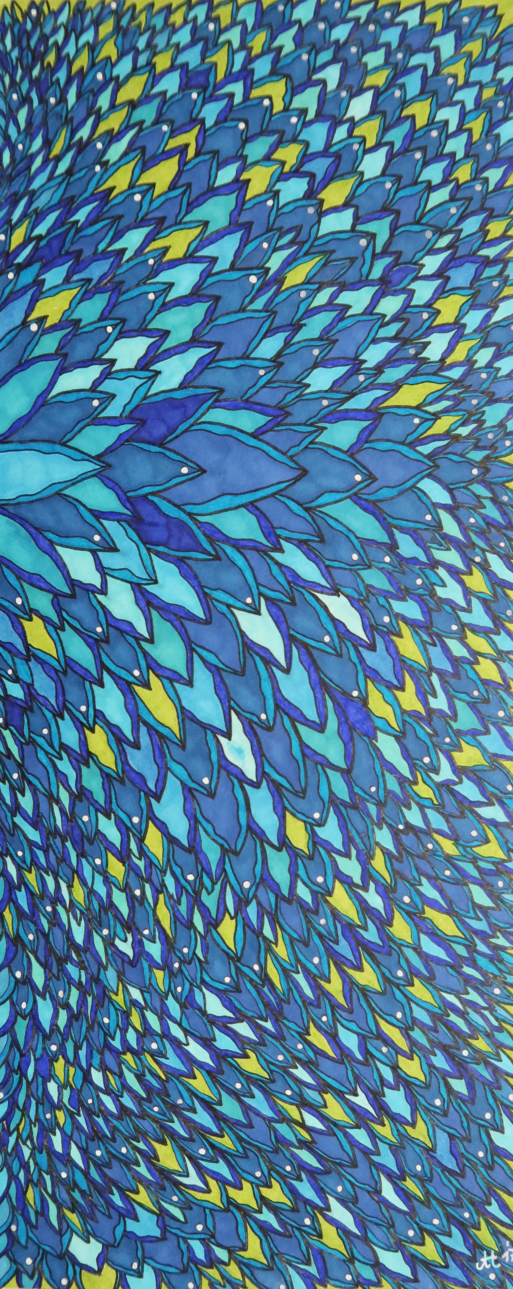 „Ein Stück Blau“, 20×50, diverse Marker auf Papier, Preis auf Anfrage.