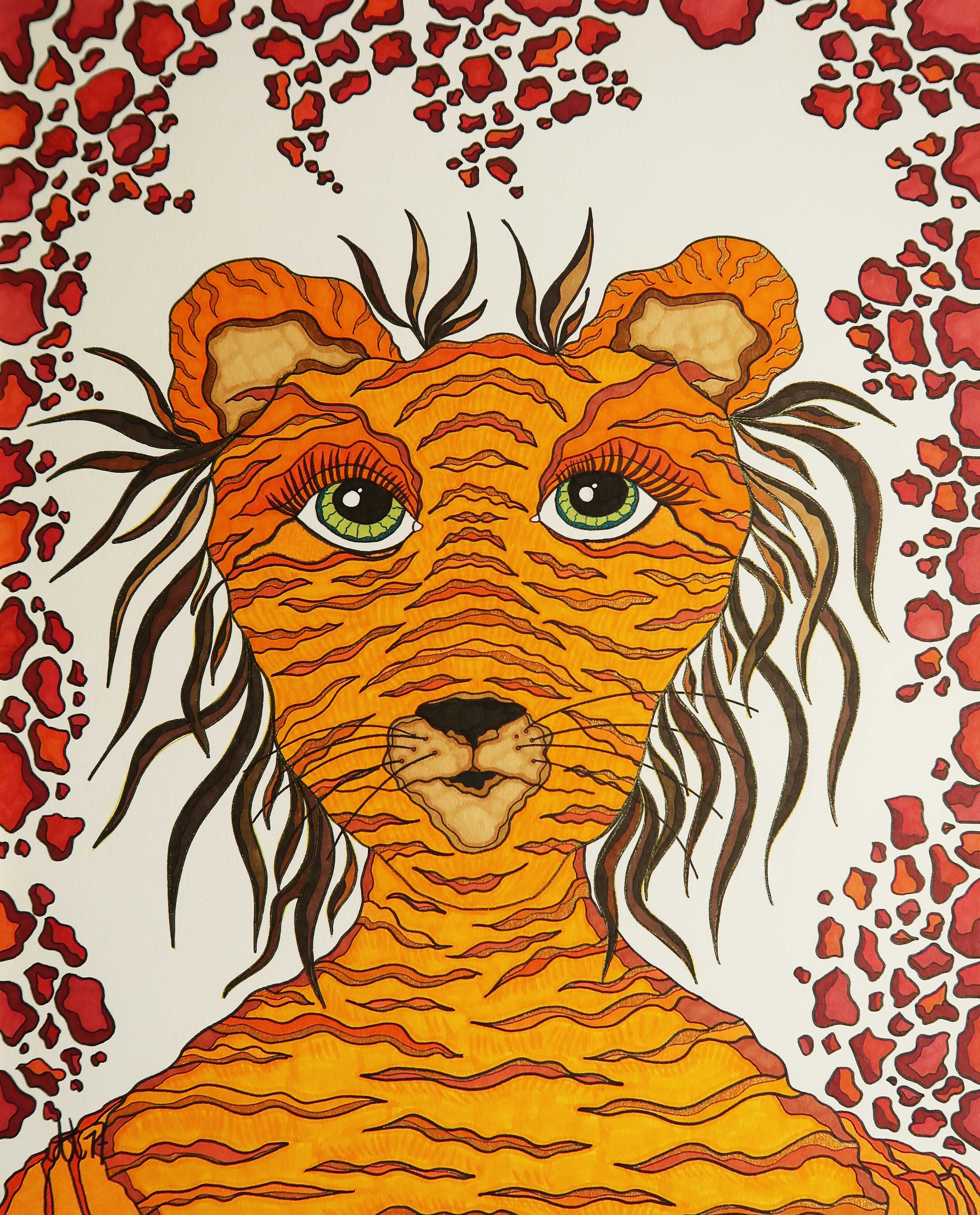 „Meine Tigerin Lea inkognito“, 40.6×50.8, diverse Marker auf Papier, Preis auf Anfrage.