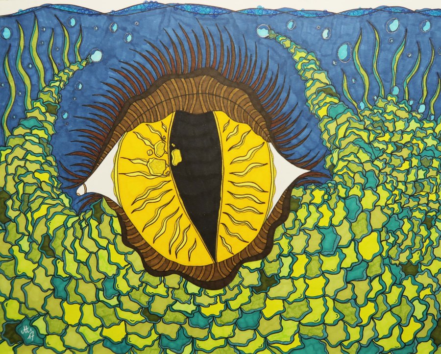 „Der versunkene Augenblick“, 40.6×50.8, diverse Marker auf Papier, Preis auf Anfrage.