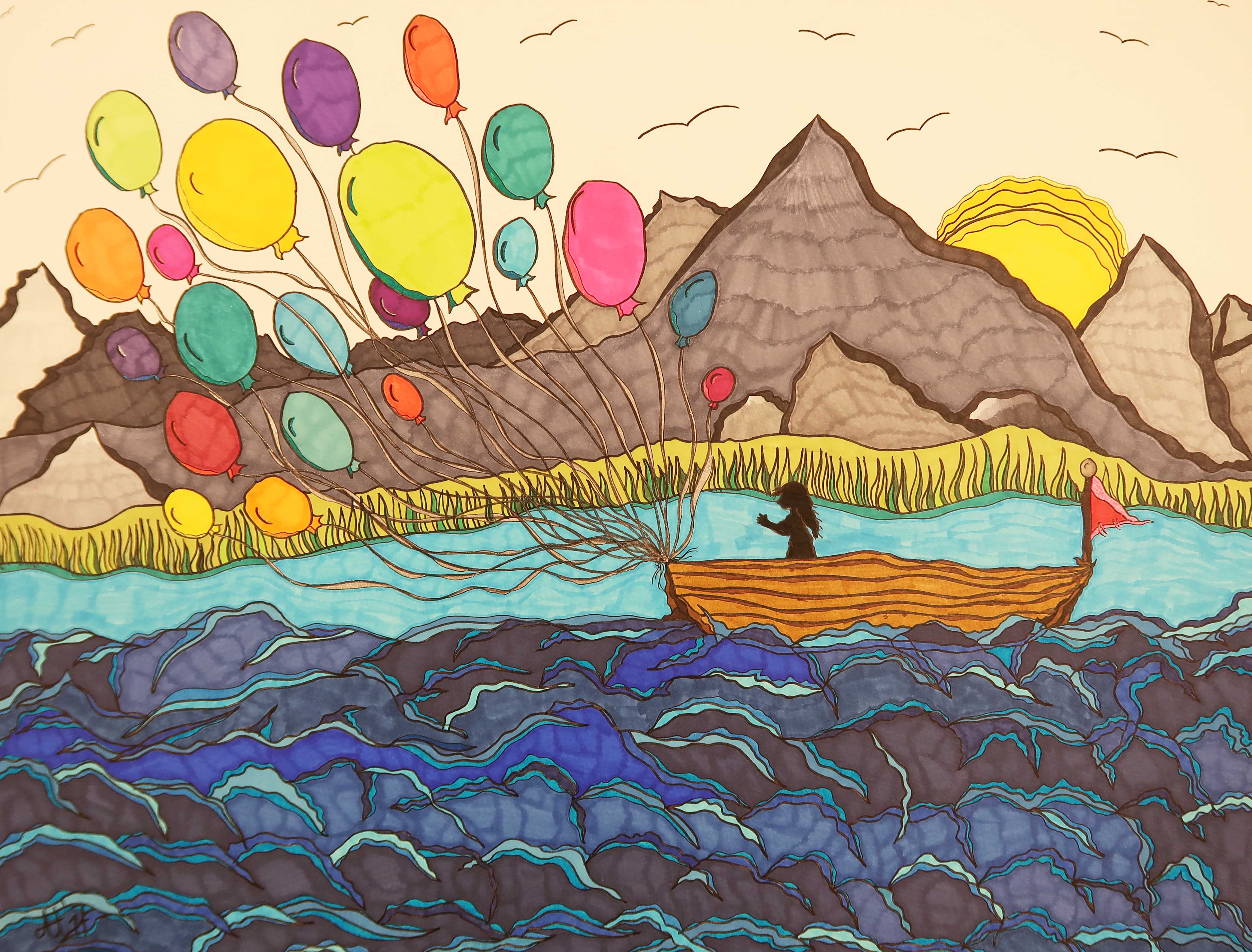 „Gezogen“, 50×65, diverse Marker auf Papier, Preis auf Anfrage.