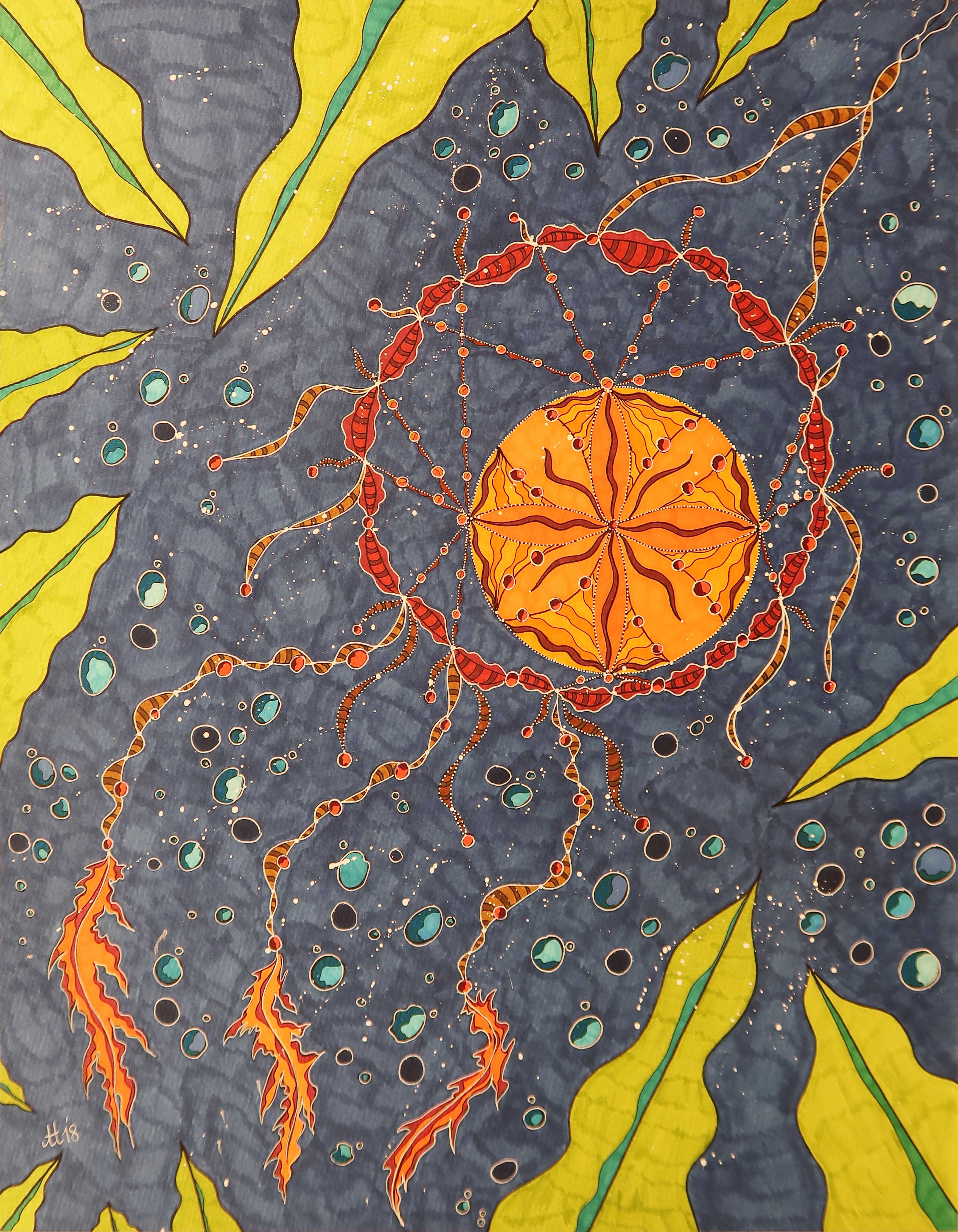 „Unterwasser Träume“, 50×65, diverse Marker auf Papier, Preis auf Anfrage.