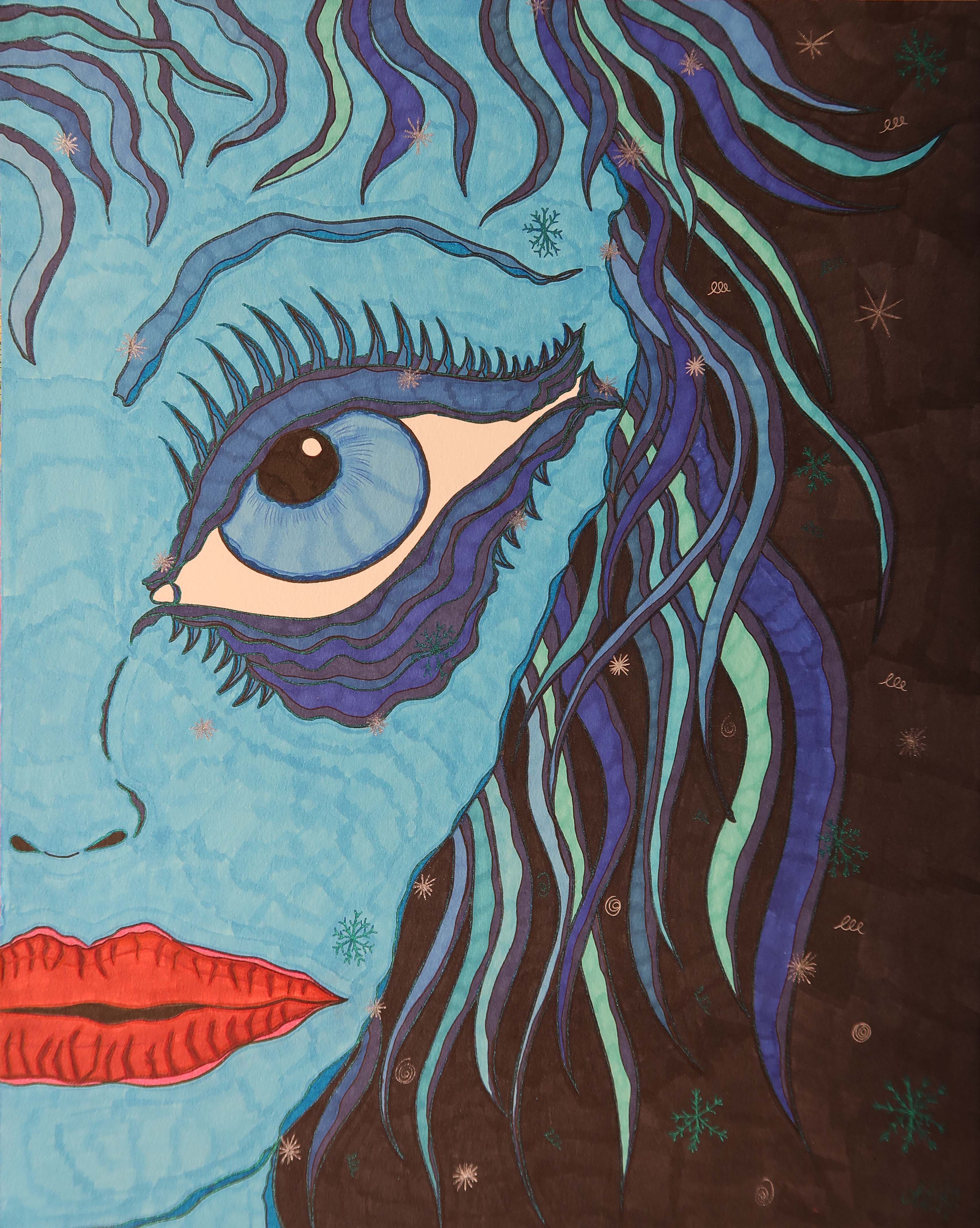 „Zu Eis erstarrt“, 40.6×50.8, diverse Marker auf Papier, verkauft.